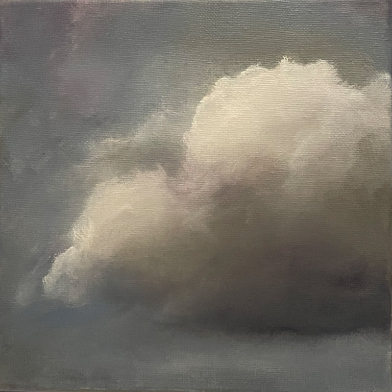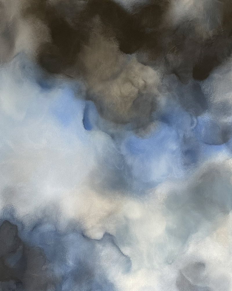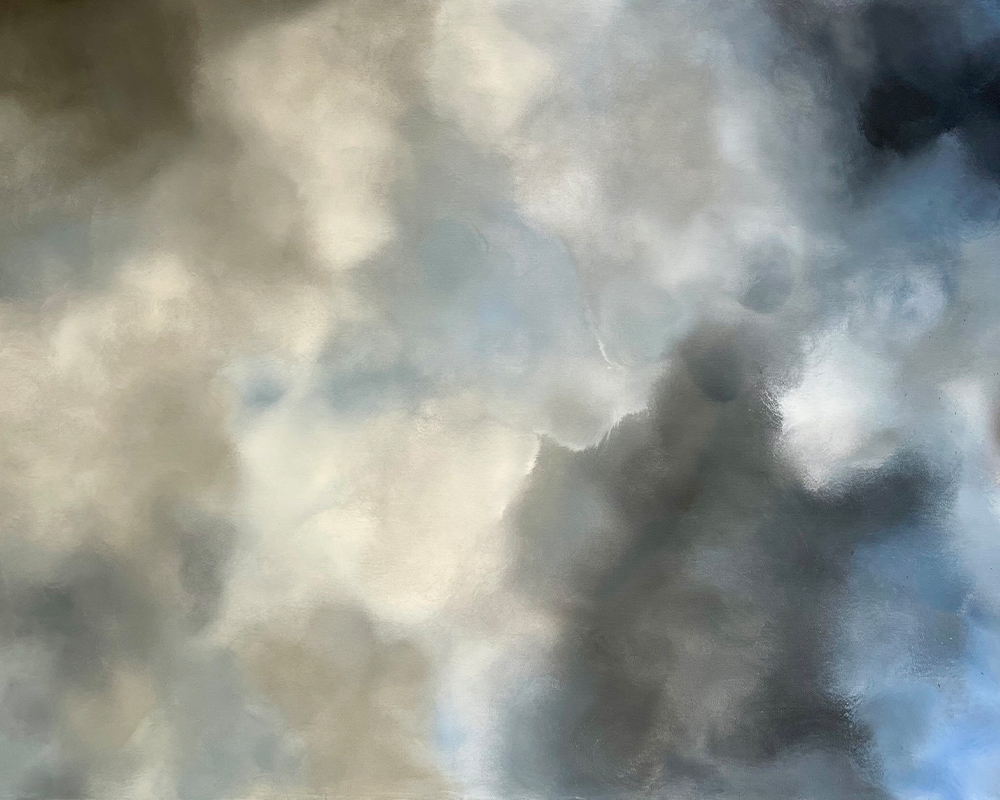 Abstraktes Wolkenbild ‚Summer Clouds‘ von Christin von Wels. Die helle, großformatige Himmelslandschaft zeigt weiche, ineinanderfließende Strukturen in Weiß, zartem Beige und kühlen Blautönen, die an einen lichten Sommertag erinnern.
